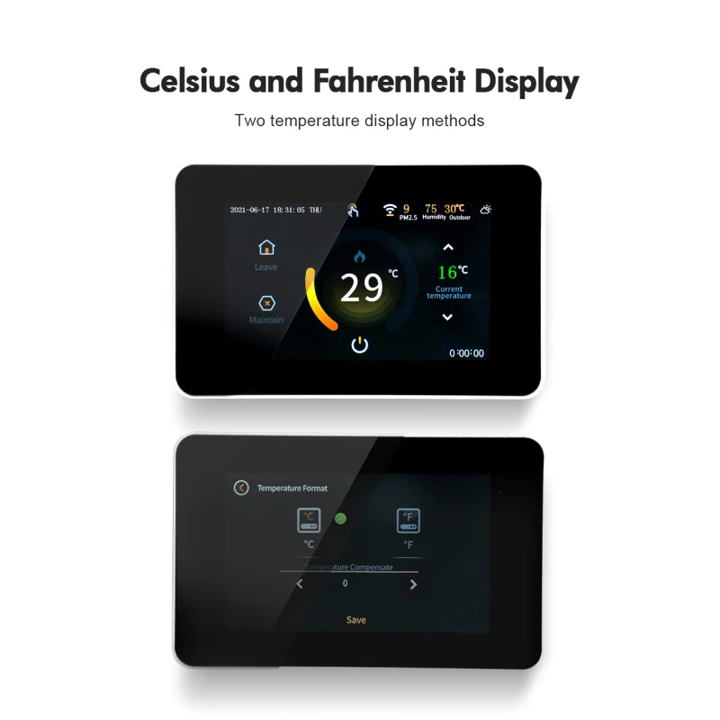Tuya WiFi Thermostat Touchable Programmable Water Gas Boiler Heating Touch Color Screen PM2.5 Weather Forecast Voice Control