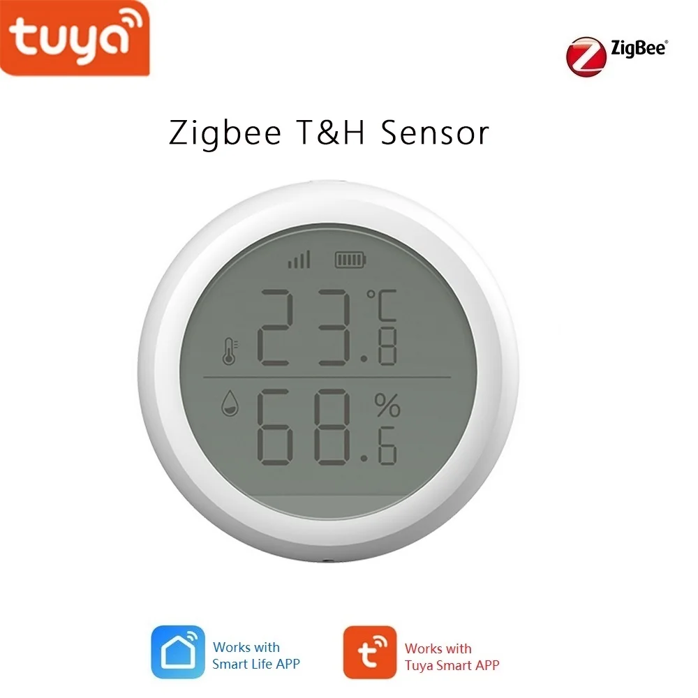 Tuya Zigbee smart Home Temperature & Humidity Sensor with Lcd screen, Support IF then function auto turn on TV or air Cons.