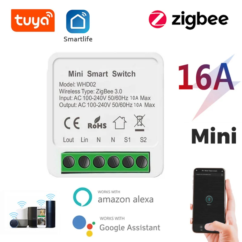 Tuya Zigbee / Wifi MINI Smart Switch 2 Way Control 16A Switch Tuya Smart Home Automation Breaker Works With Alexa Google Home