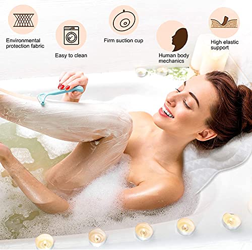 TWBEST Cuscino per Vasca da Bagno,40 * 40cm Cuscino da Bagno con 6 Ventose,Spa Pillow/Bath Pillow/Cuscino Poggiatesta Ergonomico per Vasca Idromassaggio Home Spa Relax per Schiena Spalle Collo