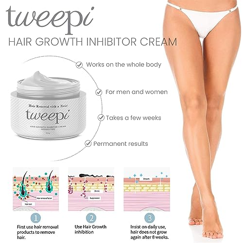 Tweepi - Crema inibitore per la crescita dei capelli, per la depilazione permanente del corpo e del viso, crema per la rimozione dei peli del viso e del corpo, prodotto nel Regno Unito, 50 g