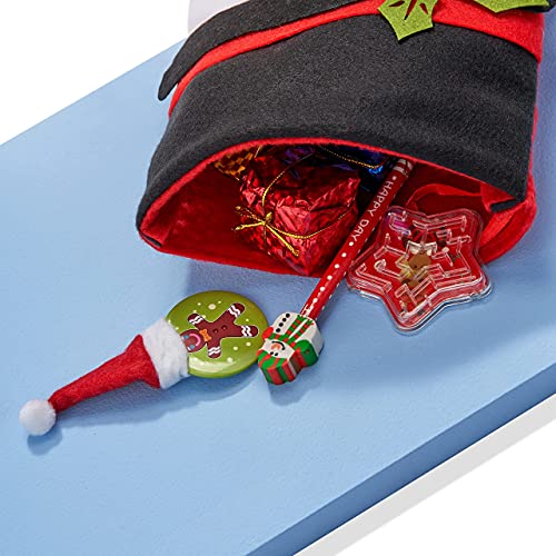 Design divertente - Tartan stagionale e rosso per un tema classico natalizio. Ogni calza ha un carattere diverso: Babbo Natale, Rudolf e il Pupazzo di Neve. Gambe simpatiche che emergono dal fondo delle calze rendendole ideali da appendere al camino in attesa di Babbo Natale che scende dal camino.