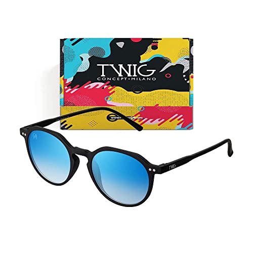 TWIG Occhiali da sole MAILER uomo/donna UV400 tondi rotondi vintage (Fresh Blue)