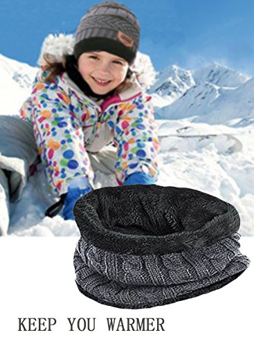 【CALDO】: sciarpa per bambini a maglia fine in guscio acrilico al 100% con fodera in sherpa morbidissimo, Più un cappello caldo. La sciarpa a sfioro ad anello foderata in pile spesso dona al tuo collo una sensazione calda e morbida dal freddo, si consiglia LAVAGGIO A MANO.