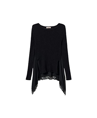 Twin Set - MAGLIA MISTO MOHAIR CON TESSUTO E PIZZOTWIN SET NERO - 212TP350B 00006 - S, NERO