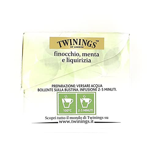 Twinings Infusi - Finocchio, Menta e Liquirizia -Infuso Digestivo Perfetto dopo Pasto - Sapore Naturale del Finocchio,Freschezza della Menta Piperita e il Gusto Dolce della Liquirizia (20 Bustine)