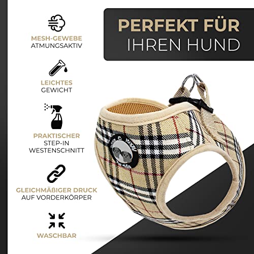Twinkle & Mogly - Imbracatura per cani Imbracatura morbida a rete con doppia chiusura a prova di rottura per piccoli cani a scacchi beige XL