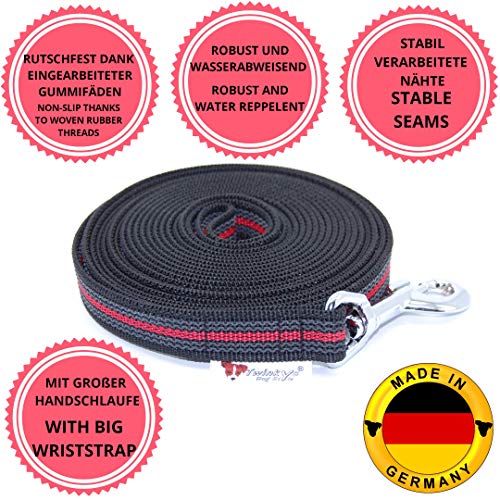 Twinkys Dog Style Made in Germany Drag Leash Guinzaglio per Cani, gommato Largo 20 mm per Cani Fino a 50 kg - con Cinturino da 3 Metri Nero Rosso