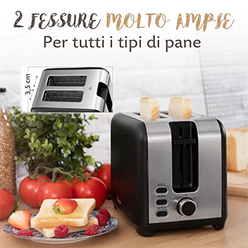 DUE FESSURE EXTRA LARGE (35 mm): le aperture del tostapane sono concepite per tostare tutti i tipi di pane: fette di pancarré, baguette, toast o focaccine, ce n'é per tutti i gusti;