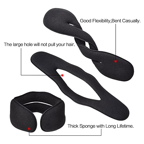 Twist Curler Donut Strumenti,Ciambella Capelli Twist,Spugna Clip,Donut Tools per Ragazzeper Capelli Styling,3 Grandi e 3 Piccoli (Nero)