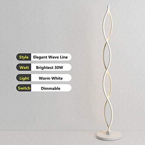 Twist Onda Dimmerabile Lampada da Terra a LED - ELINKUME Design Unico Moderno Calda Illuminazione Bianca 30W Brightest, Interruttore a Pulsante Dimmerabile, per Soggiorno/Camera da Letto (Bianca)