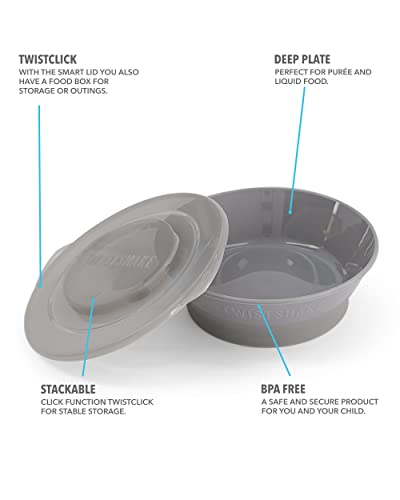 Twistshake Ciotola per Bambini in Silicone 6+ Mesi - Grigio, 1 Unità (Confezione da 1)
