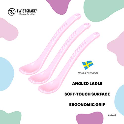 Twistshake - Cucchiaio per pappa, 6 mesi in su, 3 pezzi, colore: Rosa pastello