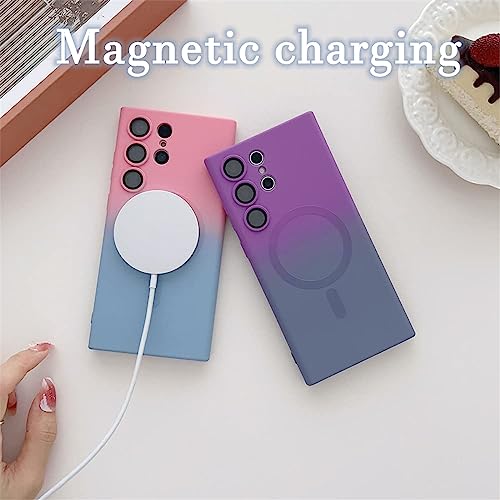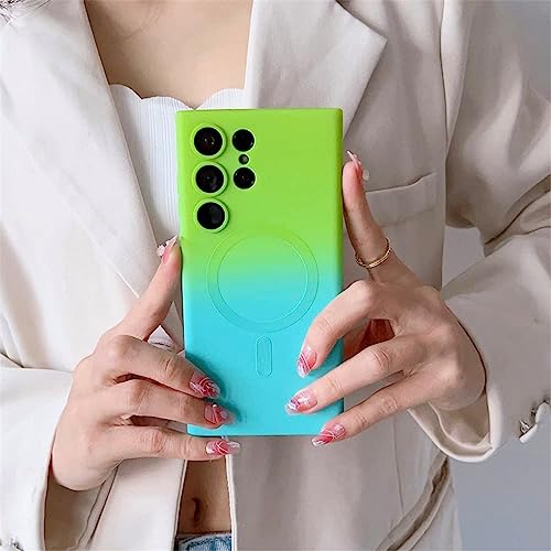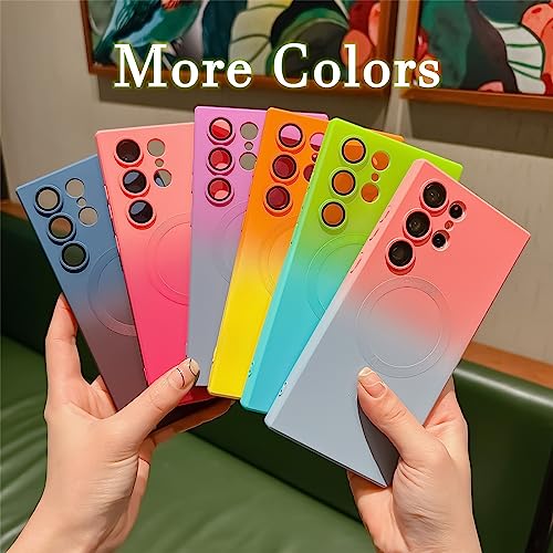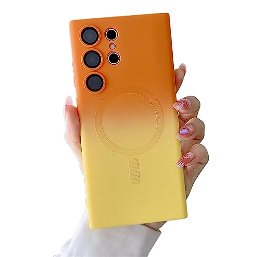 Two-Color Gradient Phone Case for Samsung S23 S22 S21 Plus Ultra,Liquid Silicone Gradient Color CoverMagnetic Case with Camera Lens Protector,Compatible Wireless chargin (S23Ultra, Orange-Yellow)