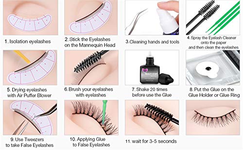Kit perfetto per extension per ciglia: set di 17 extension per ciglia, adatto per principianti o professionisti. Tutti gli strumenti sono confezionati in una borsa per il trucco, basta goderselo. (la colla non è inclusa)