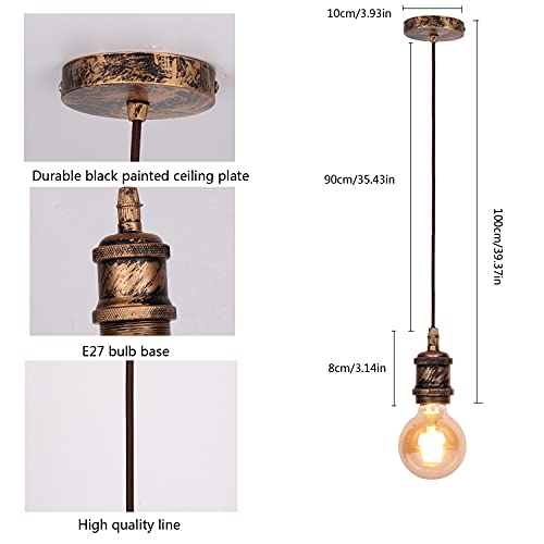 TWSXTE Applique da sospensione vintage, portalampada E27, faretti interno industriali, illuminazione a soffitto retrò antica (senza lampadina)