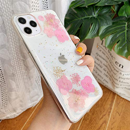 Tybaker Custodia per iPhone 11, iPhone 11, motivo floreale secchi, in gel di cristallo, fatta a mano, motivo floreale