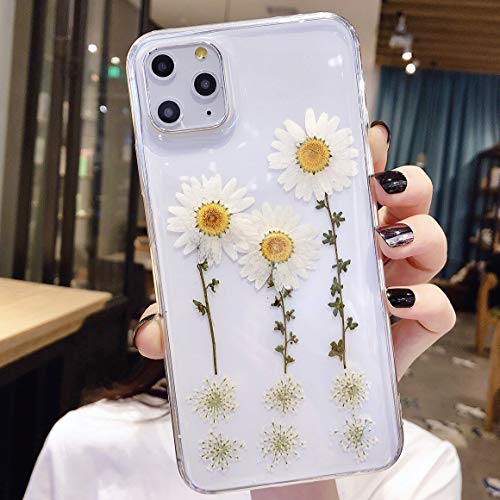 Tybiky Custodia per iPhone 12 Pro Max, con fiori secchi, in gel di cristallo, ultra sottile, per Apple iPhone 12 Pro Max, 3 margherite, colore: Bianco