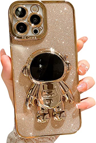 Tybiky Custodia per iPhone 11 Pro, con supporto, sottile, astronauta, glitterata, in silicone e TPU, per iPhone 11 Pro, per supporto magnetico per auto, telaio in metallo, cover per iPhone 11 Pro, oro
