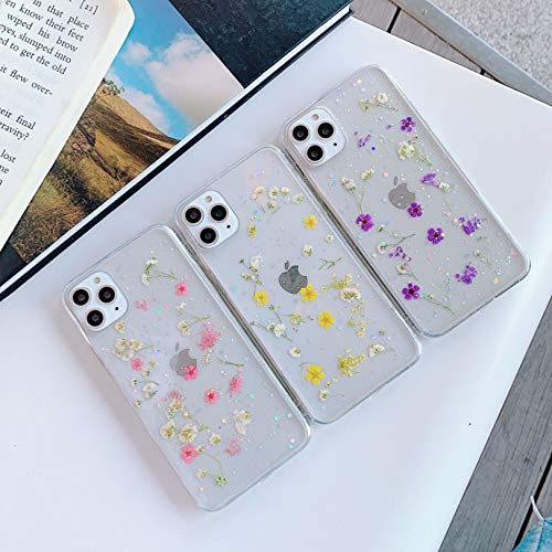 Custodia per iPhone 12 Pro, design alla moda, realizzata a mano, con fiori secchi, protegge il telefono con uno stile accattivante, design elegante, sottile e leggero, senza sensazione ingombrante.