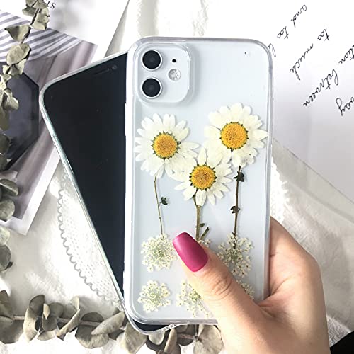 Tybiky Custodia protettiva per iPhone 13 Mini, realizzata a mano, con veri fiori secchi, realizzata a mano, per Apple iPhone 13 Mini, tre fiori