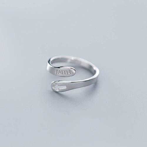 TYERY S925 Anello Di Fede in Argento, Anello Croce Lettera Moda Coreana Femminile, Anello Aperto Opens925 anello in argento, Apertura regolabile