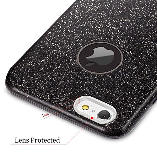 TYJTECH iPhone 6S 6 Cover, [Bling Bling Glitter Ultra-Sottile Stile Ibrido Semi-Trasparente per i Livelli a 3 Strati per Apple iPhone 6 / 6S 4.7"(Scintillante Nero)