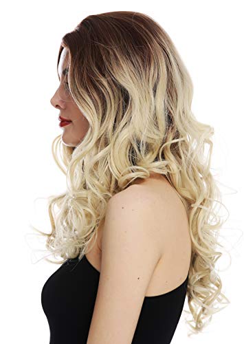 Bellissima parrucca con lace front e capelli ricci rigogliosi in un elegante e incredibile mix di marrone castagna sull'attaccatura e biondo molto chiaro sui capelli, in perfetto stile Ombre hair. L'ampio Lace front è tessuto a mano, rende possibili pettinature personalizzate e dona alla parrucca un effetto ancor più naturale.