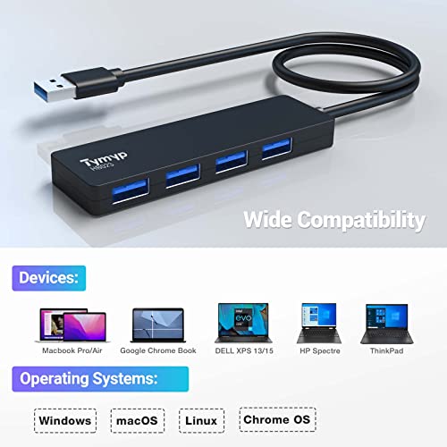Hub USB, Tymyp Hub USB 3.0 a 4 porte Adattatore USB Hub Dati Extra Leggero, Velocità di Trasferimento 5Gbps per MacBook, iMac, Surface Pro, Huawei MateBook, Unità Flash USB e Altro