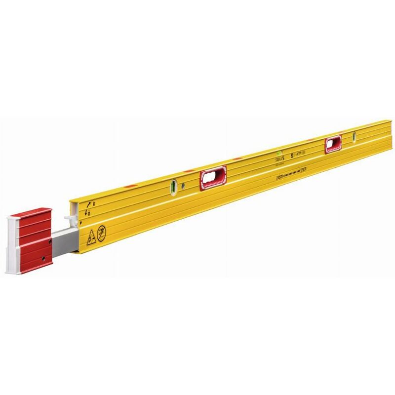 Un niveau à bulle télescopique extrêmement long et stable. Les excentriques de serrage garantissent l'exactitude des mesures dans toutes les positions. Le niveau à bulle 106 TM est équipé d'un système d'aimants aux terres rares qui adhèrent parfaitement aux poutres métalliques. Vous gardez les mains libres pour aligner et ajuster les éléments. Une expression parfaite du design innovant STABILA. Niveau à bulle télescopique à profilé rectangulaire en aluminium stable à 3 chambres et système d'aimants aux terres rares très puissants pour une adhérence optimale aux éléments de construction métalliques - Mains libres lors de l'alignement et de l'ajustement de poteaux et poutres. Semelle extrêmement longue grâce au système télescopique unique. Excentriques de serrage puissants - Pour une précision de mesure durable. Poignées pour un maintien sûr lors du travail. Profilé avec rainures de renforcement pour une grande stabilité. Avec barre continue au-dessus de la fiole horizontale - Pour une
