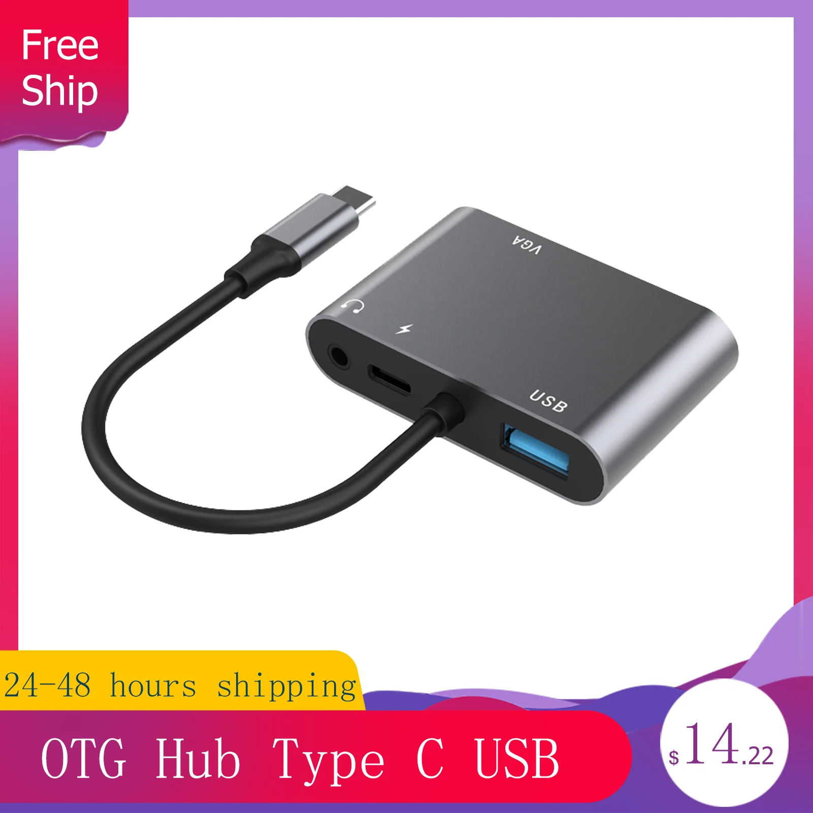 5 In 1 Type C Adapter Hunderbolt to HDMI-compatible VGA USB 3.0 and 3.5mm Jack Audio PD Charging For Tablet Accessories