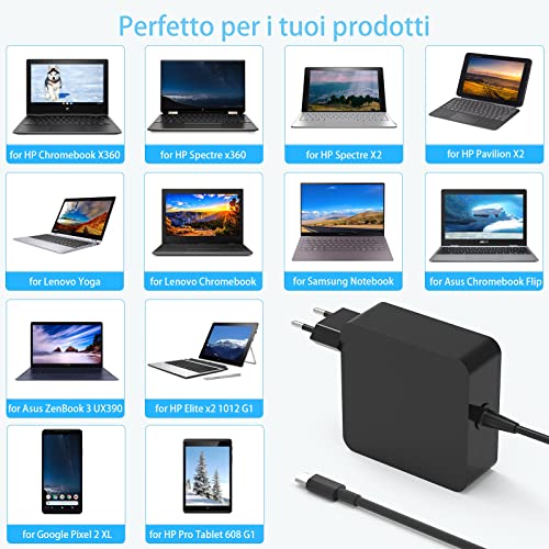 65W USB C Type C Alimentatore Universale Caricabatterie PC Portatile per Huawei Mateboook,Lenovo,Macbook Pro/Air,ASUS,Acer,HP,Samsung,Xiaomi Air Caricatore Adattatore