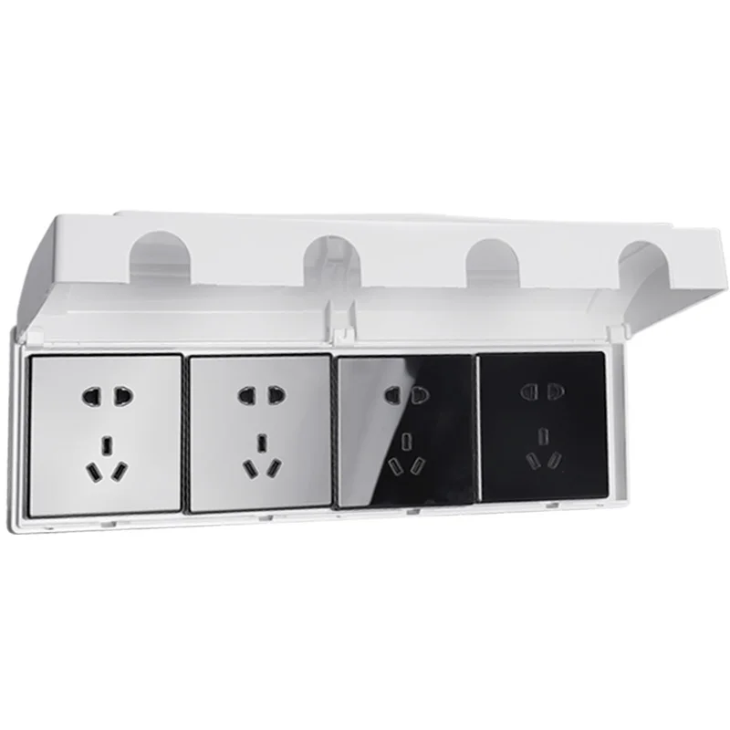 86 type one-piece socket four-piece waterproof box quadruple white splash box bathroom protective cover