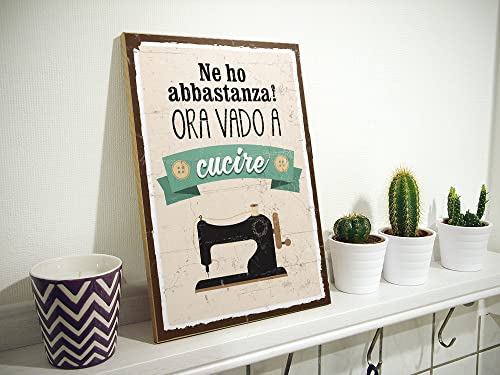 TypeStoff Targa in legno con aforisma - Ne ho abbastanza, vado a cucire - In stile vintage con frase, articoloda regalo e decorazione a tema amicizia - HS-00114-IT