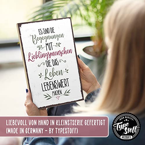 TypeStoff, targa in legno con scritta in lingua inglese "BEGNUNGEN CON I VOSTRI - in stile vintage con citazione come regalo e decorazione a tema amicizia, 19,5 x 28,2 cm