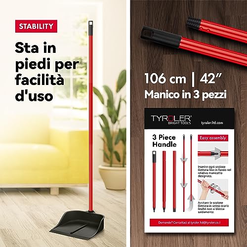 Tyroler Bright Tools Paletta Magica Raccogli Polvere con Manico 105 CM - In Solida Gomma Naturale - Sta in Piedi da Sola - Adatta a qualsiasi Scopa, Scopino, Spazzola - Per Casa, Negozio, Ufficio
