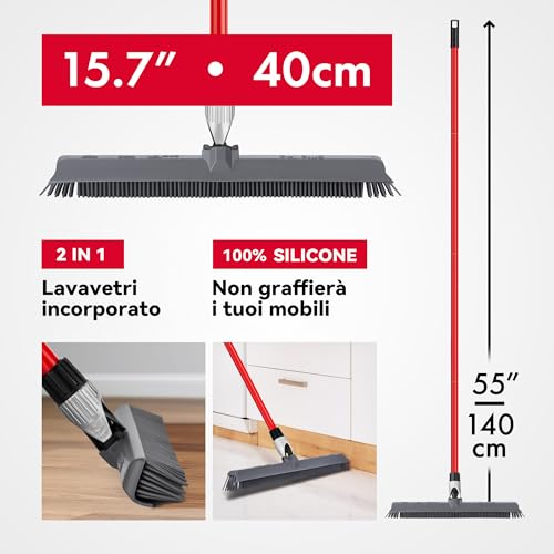 QUALITA' ECCEZIONALE: Legno, parquet, cemento, mattonelle, lastre di marmo, vetro, la nostra scopa in silicone è perfetta per qualsiasi pavimento o superficie, pulendo efficacemente per lunghi anni.