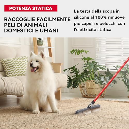 MANICO REGOLABILE CON SNODO: Lo snodo presente sul manico della nostra scopa ti permette di pulire agevolmente sotto i mobili, sotto il letto, rendendo questa scopa in silicone perfetta per peli e capelli.