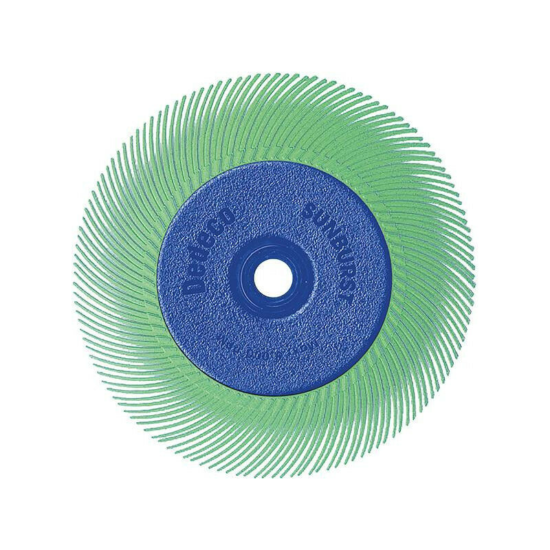 Spazzola radiale Sunburst. Tipo TC - Grana abrasiva al corindone - Spazzola in plastica. curva - Foro 25,4 mm - Utilizzo su blocchi di levigatura - Grazie alle setole più sottili e flessibili, maggiore adattabilità, si ottiene una finitura costante anche su superfici profilate - Per una lunga durata dell'utensile e un'asportazione costante. nessun intasamento. minima pressione di contatto - Per la pulizia di superfici fortemente intasate. Sbavatura e preparazione delle superfici Fornito: con flange in nylon per diametri interni 12,7. 15,9. 19. 22,2 mm.