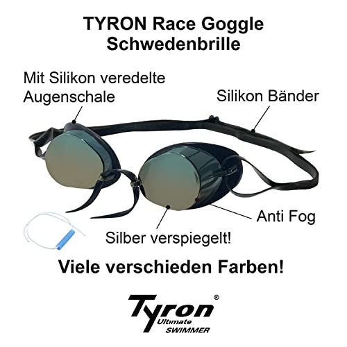 Tyron Performance Race Goggle (anti-appannamento - oro specchiato) | Occhiali da nuoto | evoluzione degli occhiali svedesi con bordo morbido in silicone/ponticello