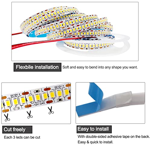 Tyun 12V Striscia LED, 1200 LEDs Bianco Naturale 4000K CRI 90+ 5 Metri Strisce LED SMD 2835 IP20 LED Flessibile LED Strip Nastri LED per giardino, camera da letto, decorazione della cucina