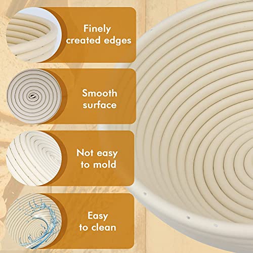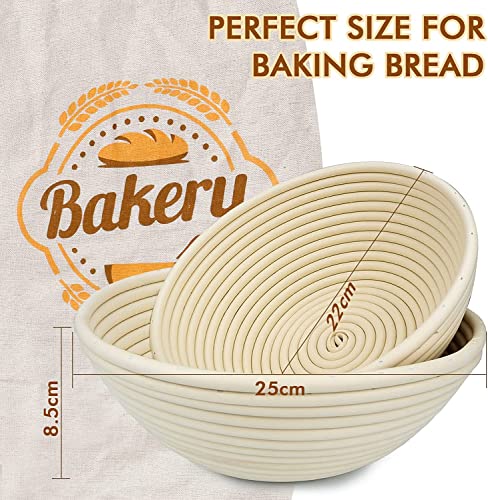 Tyywjw Cestini Lievitazione Pane, 2 Set Cestino Rotondo da Lievitazione, Cestino per Lievitazione Pane, Cestini da Lievitazione Pane, Cestino Lievitazione Pane con Tela di Lino per Pane (22 + 25 cm)