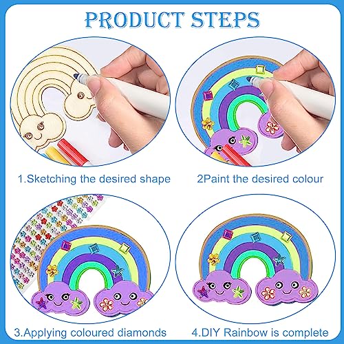 TZQFROCE Unicorno in Legno 55 Pezzi Unicorno Legno Decorazione Kit Artigianato Legnocon matite acquerellabili adesivi diamantati per Bambini Compleanno Artigianato