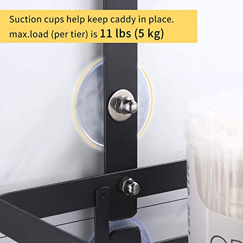【Forte capacità di carico】 Questo cestino da bagno nero ha una forte capacità di carico di 11 libbre per livello. Questo robusto scaffale da doccia senza fori è un pratico organizer da bagno per la tua casa.