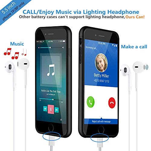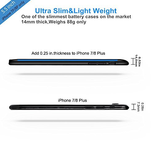 custodia con batteria: È possibile caricare questo iPhone 7/8 Plus con cavo Apple Lightning. smart-charge Tech si evitare il corto circuito, surriscaldamento e sovraccarico.Senza rimuovere il caso di batteria, sincronizzazione dati iPhone per MacBook/PC attraverso cavo lightning.Funziona con ios11 e tutti i futuri aggiornamenti