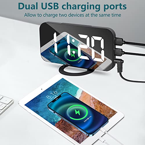 U-picks Sveglia digitale, 6,5" sveglia da comodino, orologio da tavolo, Orologio con superficie a specchio, Snooze, 3 modalità di dimmerazione, Sveglia USB Per casa, camera da letto, cucina-Nero