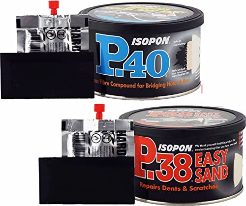 U-Pol David's Stucco per carrozzeria in poliestere Isopon P38 da 250 ml, multiuso, levigatura facile e U-Pol David's Stucco per carrozzeria P40 da 250 ml, pasta di riparazione 2K in fibra di vetro, legante in poliestere 2K, confezione da 2 x 250 ml