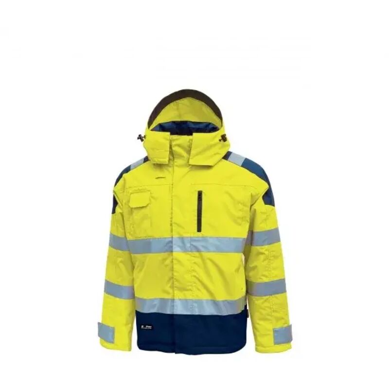 Il giaccone da lavoro Defender HL161YF di U-Power è un parka anti pioggia impermeabile e traspirante, con bande riflettenti applicate su busto, maniche e spalle, a garantire la sicurezza di chi lo indossa. Un capo comodo e pratico grazie anche alle numerose tasche di cui dispone: due ampie tasche frontali sul fondo chiuse con zip, una tasca sul petto nel lato destro chiusa con zip e coperta da pattina e sormontata da una tasca porta cellulare e una tasca sul petto nel lato sinistro chiusa con zip idrorepellente, inoltre presenta una tasca multimediale interna con uscita per auricolare tecnologia Free Sound ed una tasca interna supplementare in rete di nylon. Questo capo dispone di chiusura centrale con zip ricoperta da paramontura frontale, un cappuccio regolabile e staccabile. Si tratta di un capo caldo e confortevole con microfleece sul colletto, doppio tessuto di rinforzo su gomitied apertura interna posteriore per agevolare stampe e ricami. Si abbina al pantalone Subu. Tipologia