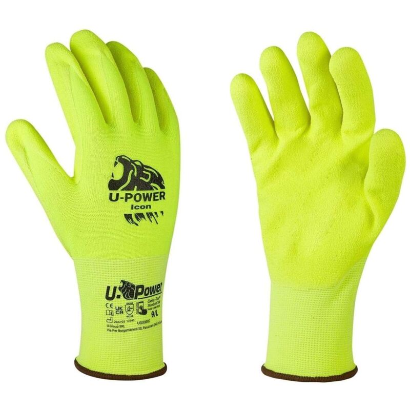 Guanti da lavoro U-Power Icon per tutti gli usi - touch screen - fodera nylon spandex - palmo micro schiuma di nitrile -Oeko-Tex per tutti gli usi touch screen fodera nylon spandex palmo micro schiuma di nitrile Oeko-Tex I Guanti da lavoro UPower Icon giallo fluo sono un accessorio indispensabile per lavorare in sicurezza e col massimo della funzionalità tattile ;