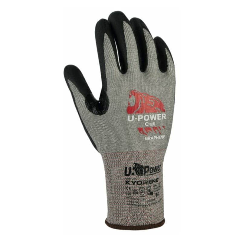 sono guanti di alta qualità realizzati con fodera in grafene sottile, resistente e flessibile . La struttura impedisce lo sviluppo di batteri nocivi alla salute delle mani, riequilibrando l'acidità del sudore, evitando la nascita di cattivi odori . Inoltre il grafene favorisce l'omogenea distribuzione del calore in ambienti caldi o freddi, mantenendo una temperatura sempre costante, proteggendo le mani anche dai raggi UV-A e UV-B. I Guanti antitaglio UPower High hanno il palmo della mano in schiuma di nitrile, traspirante ed elasticizzato;